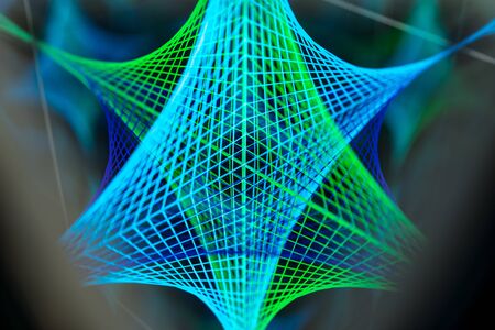Abstract pattern of bright multicolored threads on black background with 3D effect