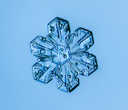 Natural snowflake crystal in blue background