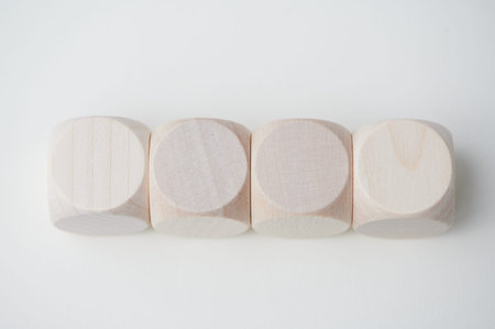 Four wooden blocks on a white background with a simple design.