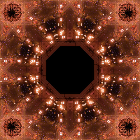 Symbols and symmetrical geometric pattern.