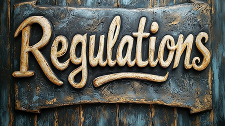 A vintage styled hand-drawn lettering of 'Regulations' on a textured background. Ideal for concepts related to rules, authority, or compliance with an artistic touch.