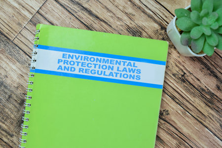 Concept of Environmental Protection Laws and Regulations write on book isolated on Wooden Table.