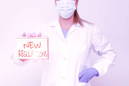 Handwriting text New Regulations. Conceptual photo rules made government order control something done Demonstrating Medical Ideas Presenting New Scientific Discovery
