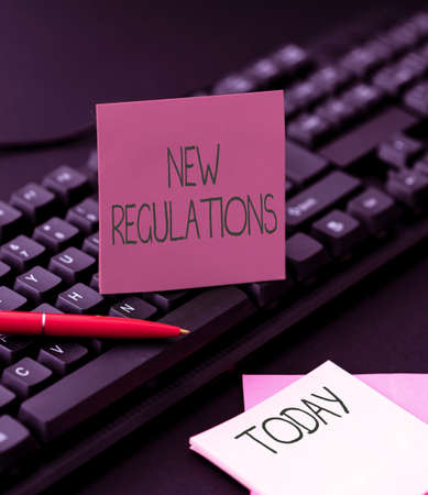 Inspiration showing sign New Regulations. Business concept rules made by a government or authority in order to control Typing Program Schedule, Retyping And Debugging Program String Codes