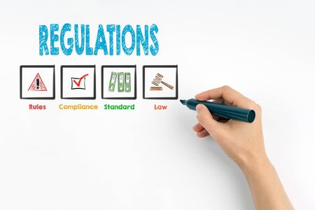 Hand with marker writing Regulations, business concept.