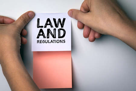 LAW and REGULATIONS concept. Colored sticky notes