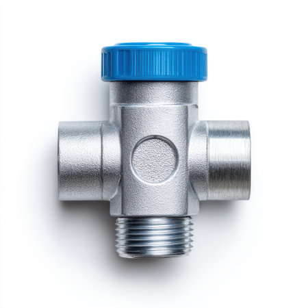 High-Quality Metal Pipe Connector with Blue Cap, Ideal for Plumbing, Heating, and Industrial Applications, Close-Up on a White Background