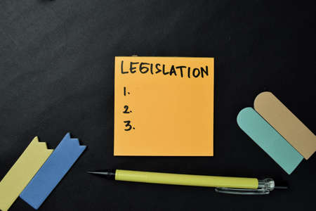 Legistation write on sticky notes isolated on office desk. Supported by an additional services isolated on wooden table.