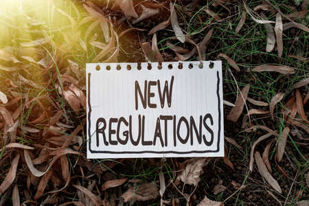 Hand writing sign New Regulations. Concept meaning rules made by a government or authority in order to control Thinking New Bright Ideas Renewing Creativity And Inspiration