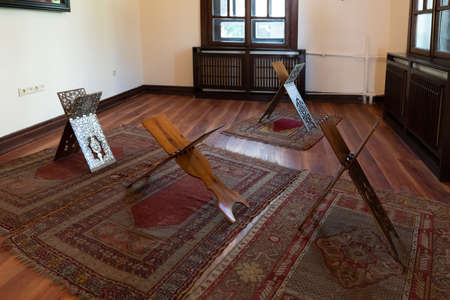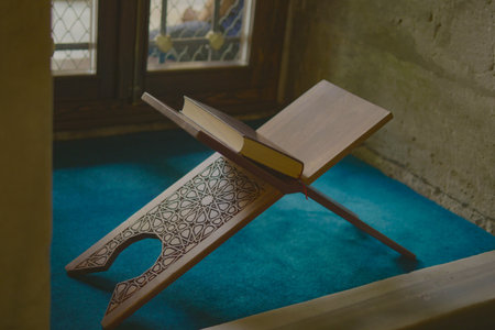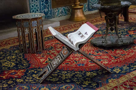 Sarajevo, Bosnia and Herzegovina, january 2020. Quran in the mosque - open for prayers