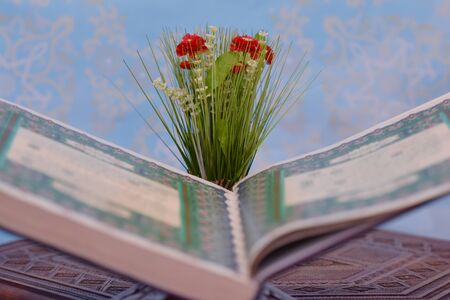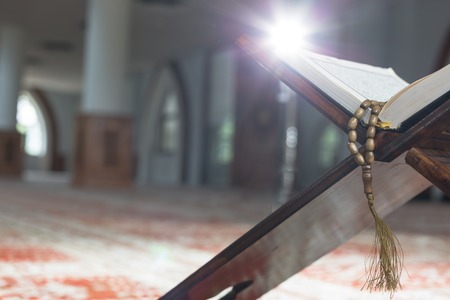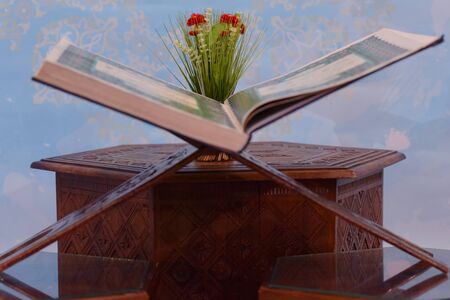 Koran holy book of Muslims, public item of all muslims on the table , still life
