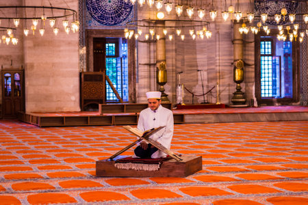 Istanbul, Turkey - June 18 2022: Mannequin of an Imam reading a Quran in the library of the Topkapi Palace Museum