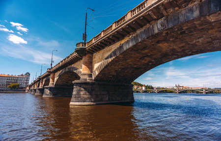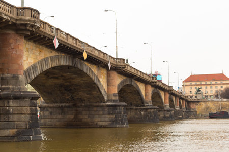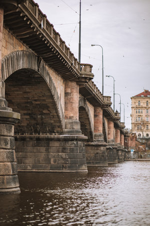 Czech Republic Prague 02.26.2017. Legion Bridge in Prague over the Vltava, low angle
