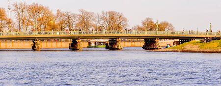 The urban landscape with bridge and river Neva. St.-Petersburg, Russia