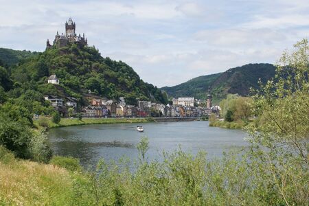 COCHEM, GERMANY - MAY 23 2019: View of the picturesque town Cochem with its famous imperial castle on top of the hill. Cochem is located at Moselle river in Rhineland-Palatinate, Germany.