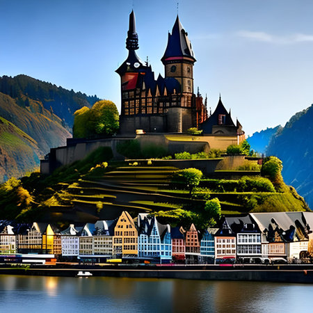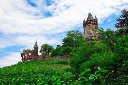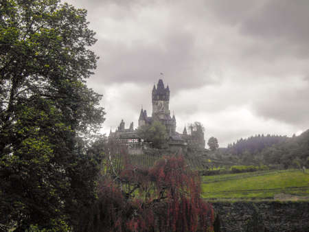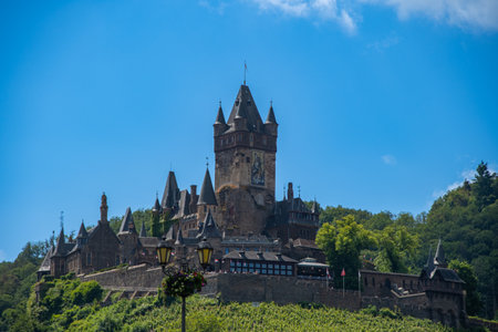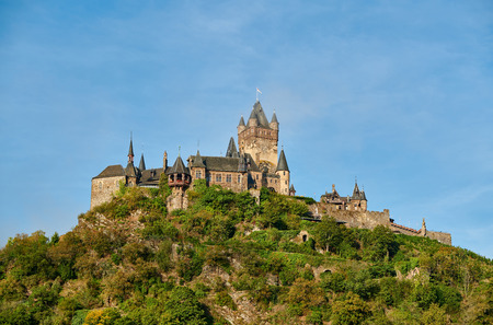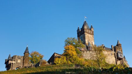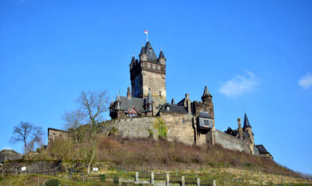 Beautiful Reichsburg castle on a hill in Cochem town, Germany