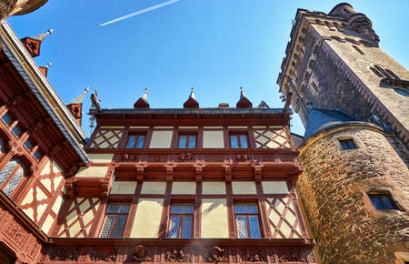 Tower and facade with old windows of Wernigerode Castle. Germany