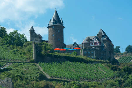 Cochem, Germany, June 13, 2021. Beautiful view of the hilltop castle (Reichsburg Cochem) and old town in the touristic town of Cochem on the Moselle River in Rhineland-Palatinate in Germany.
