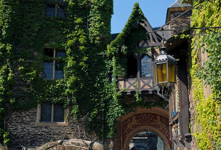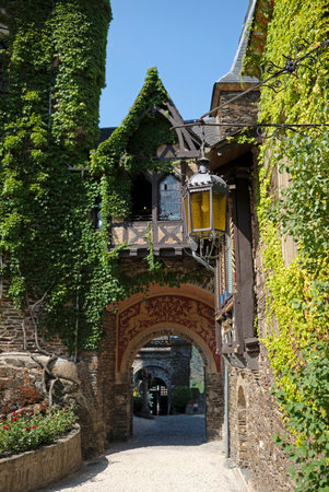 The courtyard of the Reichsburg castle in the city of Cochem in the Mosel region in Germany