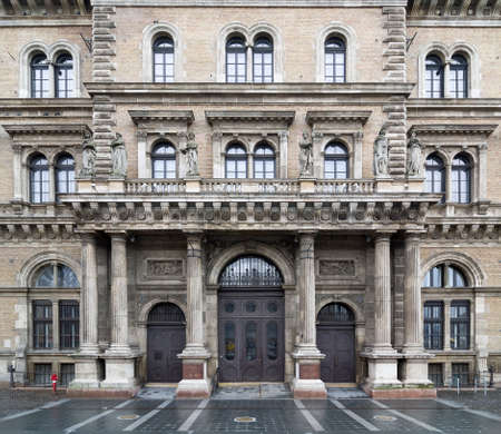 BUDAPEST, HUNGARY - FEBRUARY 21, 2016: Main building of the Corvinus University of Budapest. Part of the UNESCO Heritage Site. Built in neo-renaissance style. Budapest, Hungary.