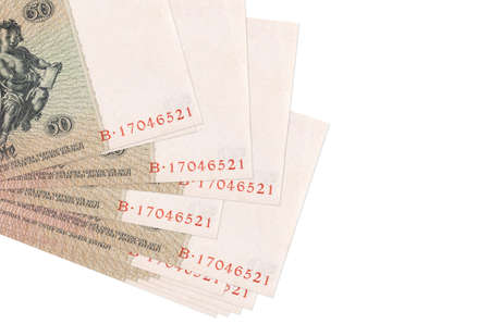 50 Reich marks bills lies in small bunch or pack isolated on white. Mockup with copy space. Business and currency exchange concept