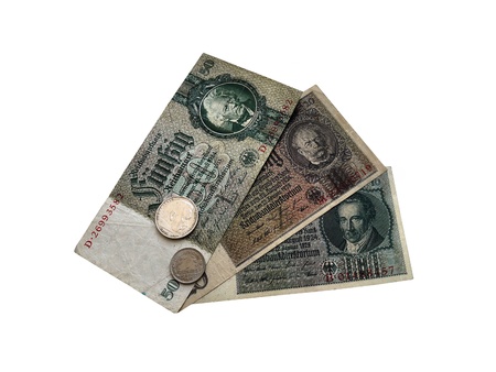 old German Reichsmarks, 10-30 years of the 20th century isolated on white background