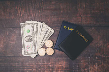 Close up Vaccines, syringe and money on the table