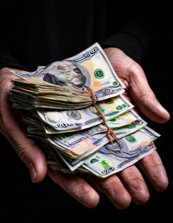 Generative AI : human hands holding money dollars 100 US dollar banknote isolated on white background