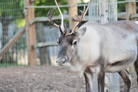 Portrait of Reindeer in the paddock on the farm