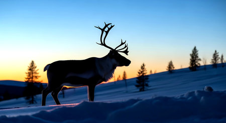 Silhouette of a reindeer at sunset in the mountains