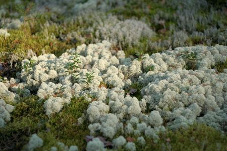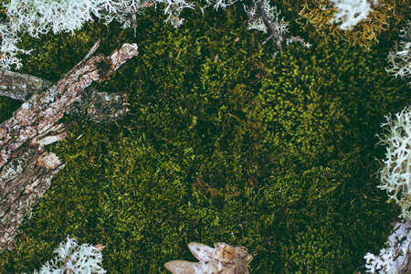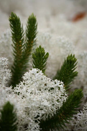 Closeup to reindeer moss, background with sharp details at bottom