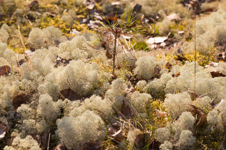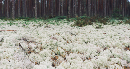 White moss in the pine forest. Nordic landscape