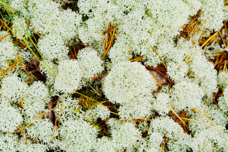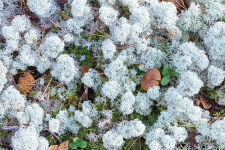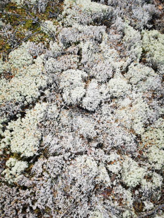 Texture white Moss on ground in forest. Background reindeer lichen