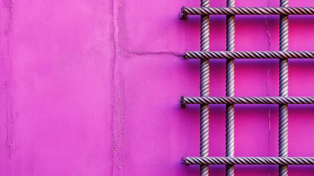 A striking image featuring a vibrant pink wall adorned with a decorative metal grate, showcasing a captivating blend of color and texture that enhances urban aesthetics.