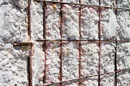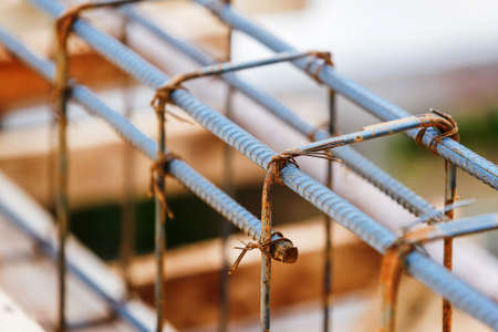 Abstract background of iron armature ready for concreting Metal armature in reinforced concrete structure close-up