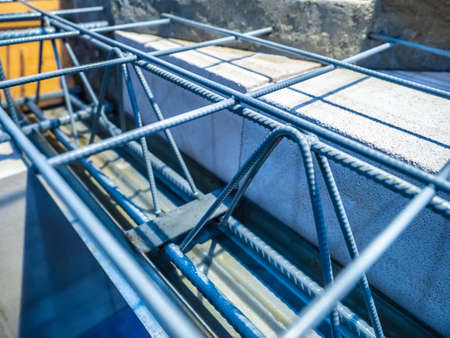 reinforcement steel rod and deformed bar in plastic formwork selective focus