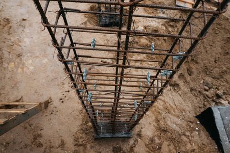 Reinforcement metal framework for concrete pouring. Ready for filling up with concrete.