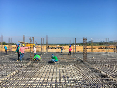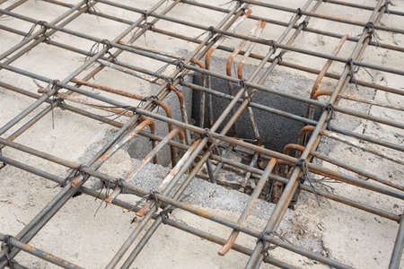 The construction site is site where reinforcement steel bars are made for concrete foundation