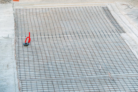 Reinforcement mesh for concrete screed. Geometric pattern. Building houses