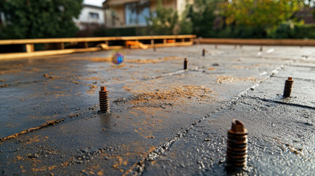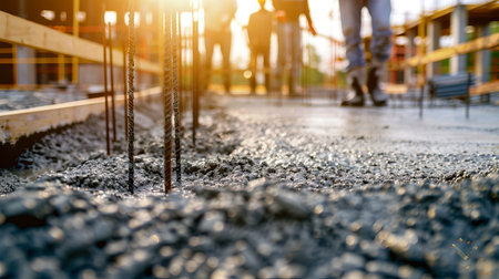 Close-up of Freshly Poured Concrete at Sunset. Concept of Construction Progress, Urban Development, and Industrial Work.