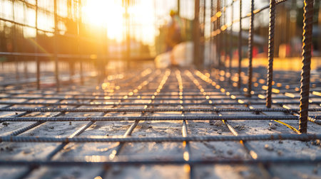 Sunrise Over a Construction Site with Rebar and Metal Supports. Concept of Urban Development, Industrial Growth, Building Progress, and Forging New Horizons.