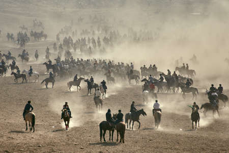 Uzbekistan, Parkent-08/03/2019: Ulak-Kupkari (buzkashi) -traditional horse riding competition in Uzbekistan