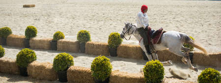 VILAMOURA, PORTUGAL - APRIL 3, 2016: Horse obstacle jumping competiion, called Vilamoura Atlantic Tour that brings the finest athletes to the event.