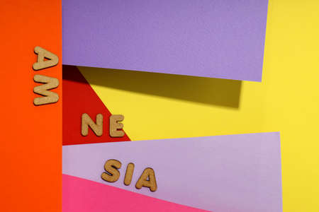 Concept of problems with memory, amnesia disease on multicolor background