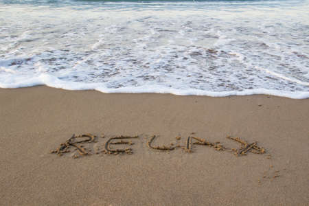 Riviera written in soft wet sand on a beach