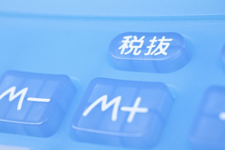 Wooden blocks with chinese text and calculator on wooden desk.