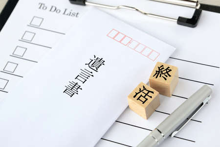 The will, the house he left behind, his bankbook, a stack of bills, a calculator, and a seal.