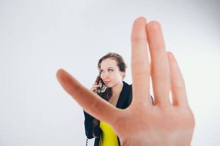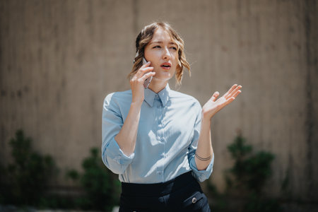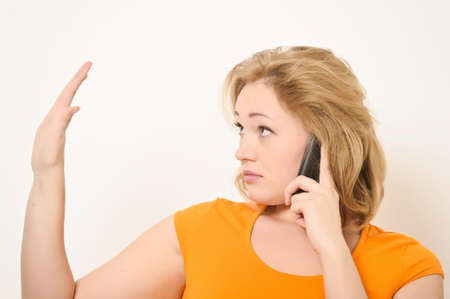 Business woman with an outraged look, a woman talking on the phone.