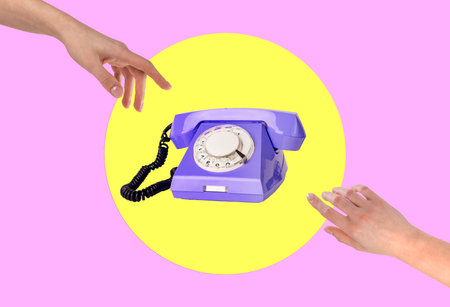 Retro-styled phone with receiver and hands in trendy style.