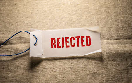 Rejected message on a piece of paper on a burlap background